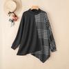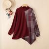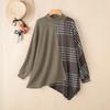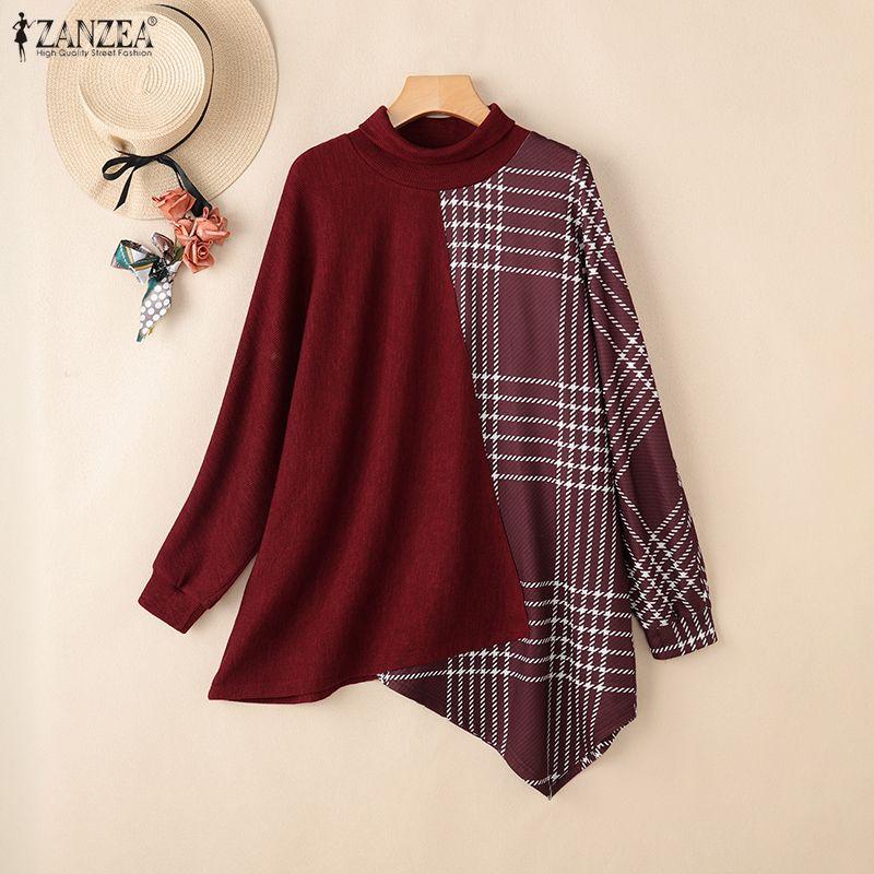 ZANZEA Women Stand Collar Long Sleeve Plaid Print Patchwork Irregular Pullover Tops