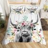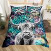 Highland Cow Bedding Set Polyester Bull Cattle Flowers Quilt Cover Western Wild Animal Duvet Cover Farmhouse Cow Bedspread Cover
