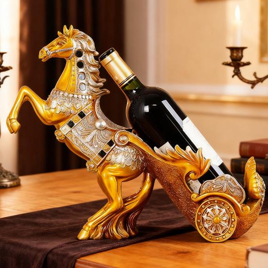 Designul său cu dublu scop expune elegant o sticlă standard de vin de 750 ml, servind în același timp ca o sculptură la modă a unui cal, perfectă pentru blaturile de bucătărie, baruri sau rafturile din sufragerie.