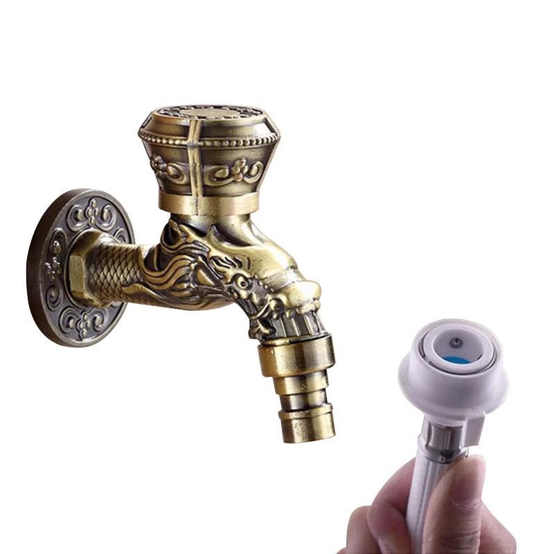 Washing Machine Outdoor Faucet , Vintage Garden Bibcock Tap Wall Mounted Mop Faucet Brass