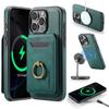 For Magsafe Magnetic Phone Case For iPhone 16 e 15 14 Plus 13 12 Pro Max Wirless Charge Detachable Leather Cards Ring Cover
