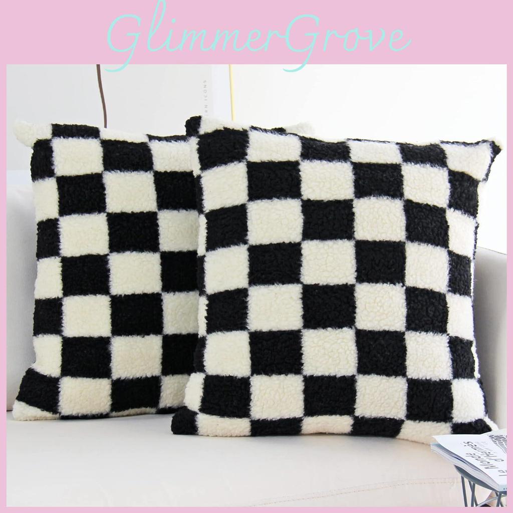 Chessboard Plush Pattern Pillowcase Car Home Living Room Sofa Bedroom Cushion