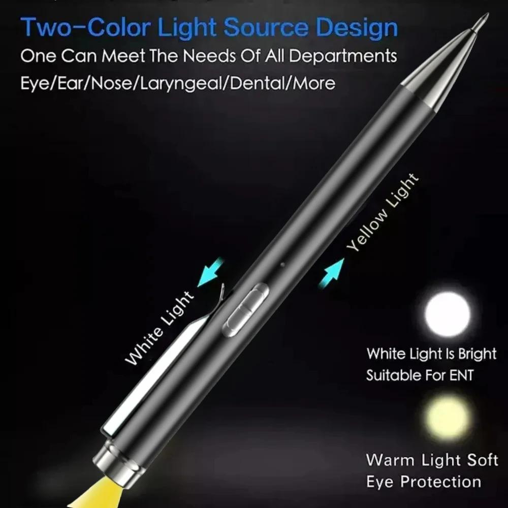 2 in 1 Mini Portable Medical LED Flashlight USB Rechargeable Dentist Nurse Pocket Pen White-Yellow Light Can Write