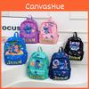 This lightweight preschool backpack features a durable nylon exterior with a breathable polyester lining It displays playful cartoon and letter prints, making it suitable for children attending kindergarten. The ergonomic curved shoulder straps support comfortable wear. Wipe clean with a damp cloth to maintain its vibrant design.