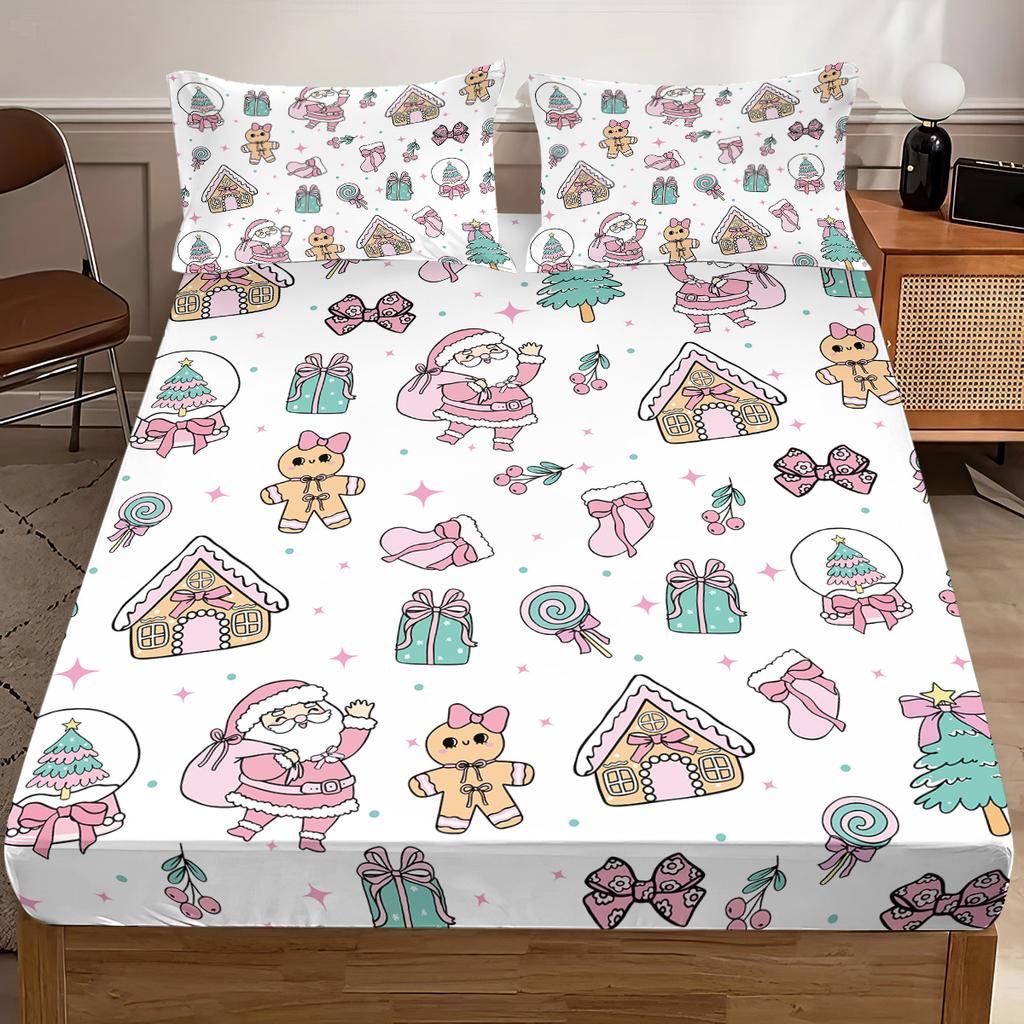 3pcs Merry Christmas Christmas Element Print Coreless Bed Sheet Set Multi Size Bedcover Bedroom Dormitory Bedding Decoration