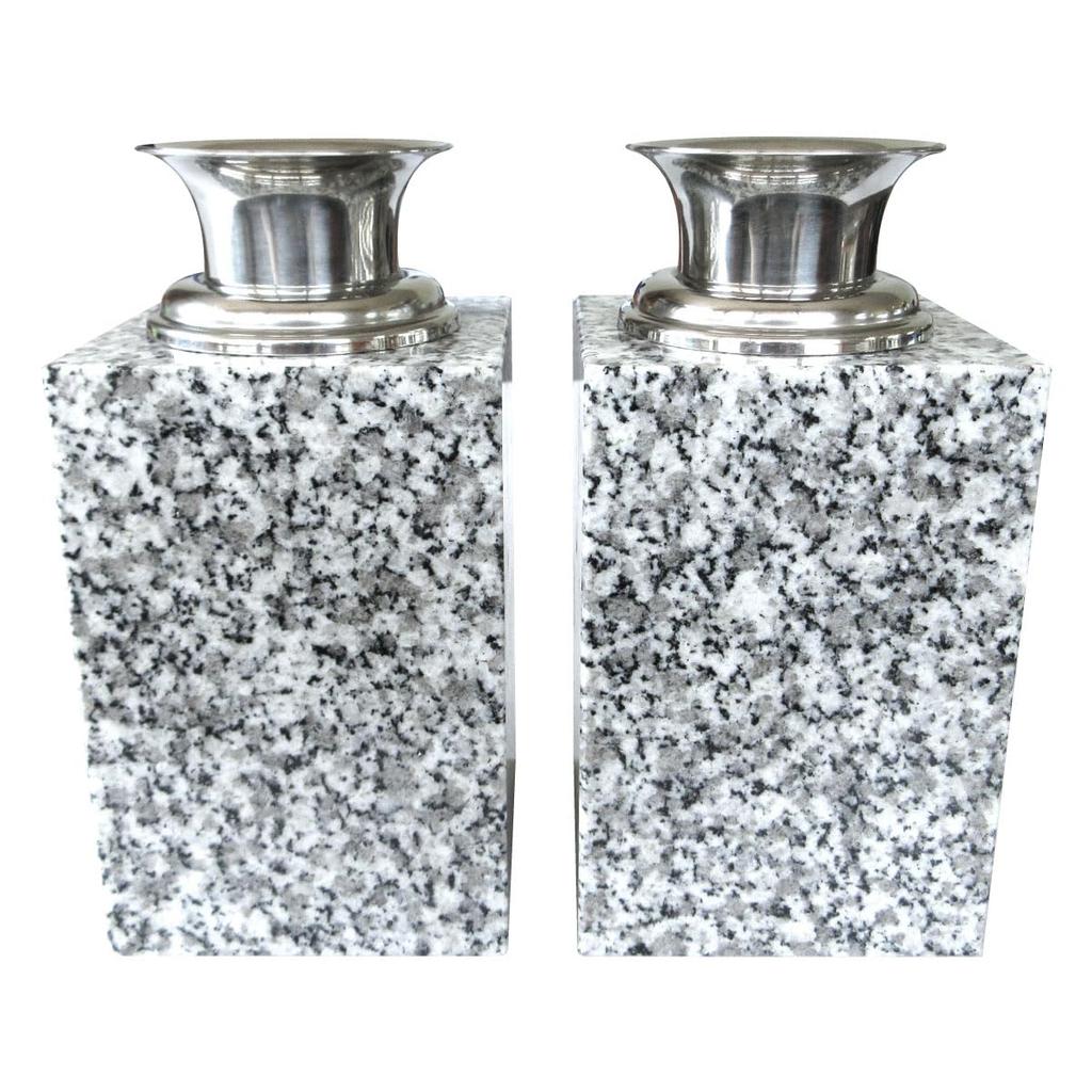 Graveside flower vases, W39x02, set of two, made from high-quality white granite with stainless steel vase. Enhance the appearance of your grave with
