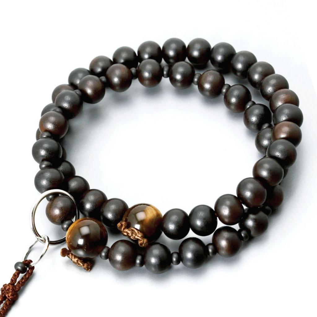 Men's double-strand Kyoto prayer beads, made of matte striped ebony and tiger's eye stone, Odamaki, Jodo sect, suitable for funerals, Buddhist