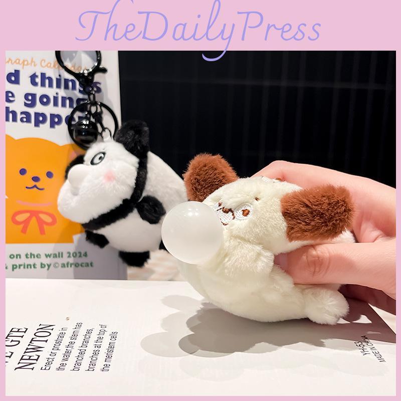 Panda Pig Chick Puppy Blow Bubbles Plush Keychain Function Kids Accessories Gift