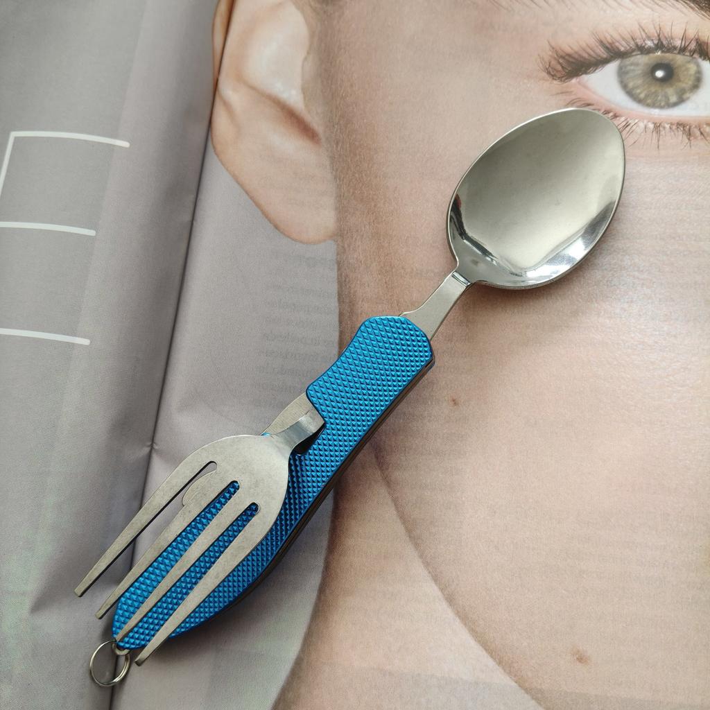 Veselă Multifuncțională 4 în 1 pentru Exterior Camping Oțel Inoxidabil Seturi de Buzunar Pliabile