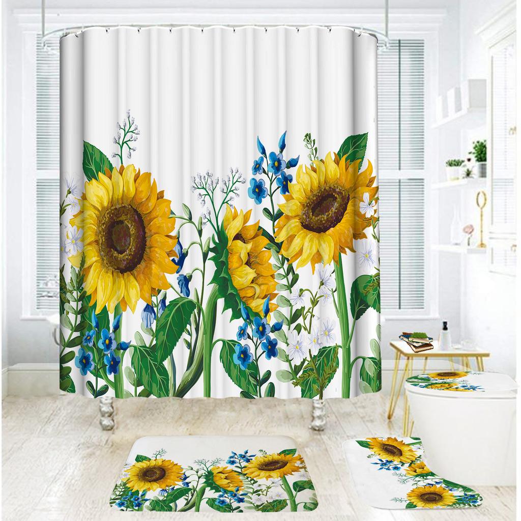 Bathroom Shower Curtain Four-Piece Shower Curtain Waterproof And Mildew-Proof Sunflower Shower Curtain Partition Curtain Free Of Punching