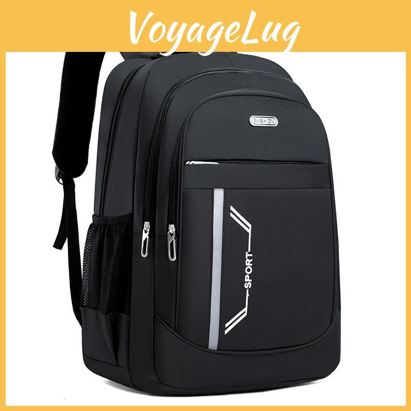 This unisex school backpack features durable Oxford fabric with a striped pattern and embossed leather accents, offering a stylish look, curved shoulder strap system for comfort. Ideal for daily use, it supports laptops up to 16 inches and is easy to maintain by wiping clean with a damp cloth.