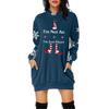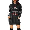 Women's Christmas Print Long-Sleeved Hooded Pocket Pullover Dress