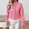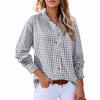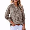 Women's Casual Fashion Plaid Ruffled Loose V-neck Shirt