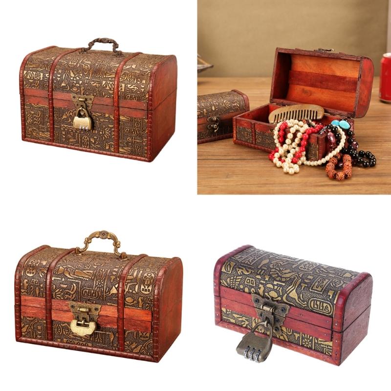Vintage Wooden Treasures Chest Decorative Keepsakes Storage Container with Lock Antique Jewelry Organiser for Women