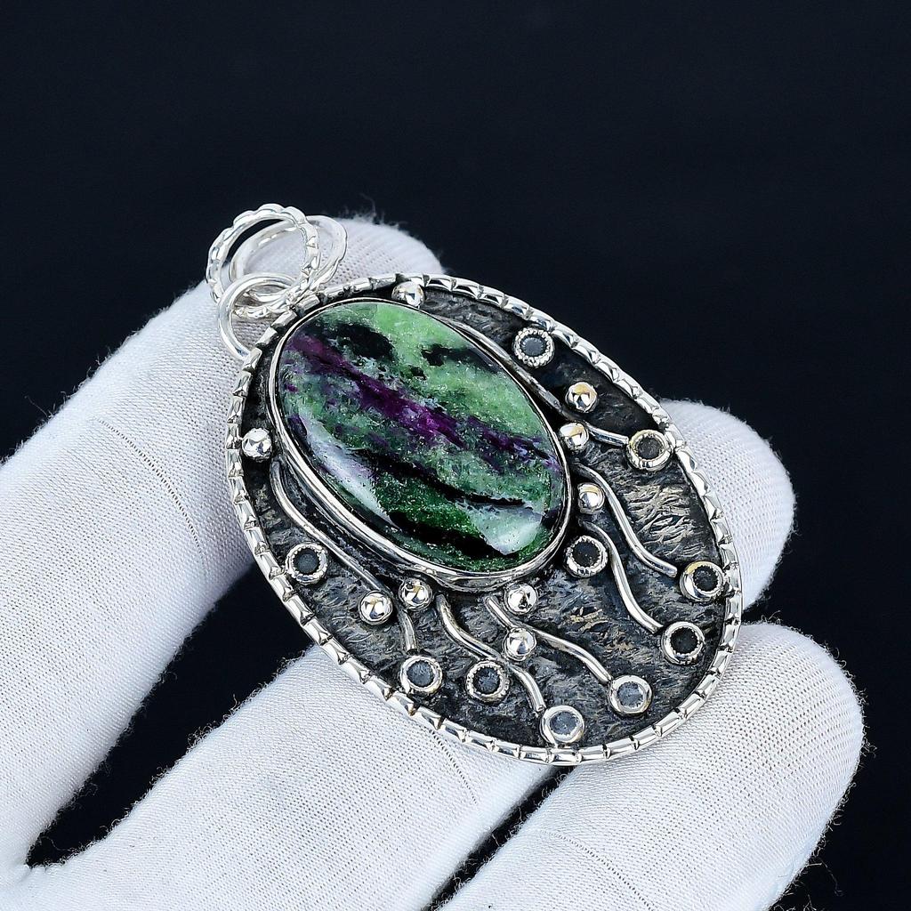 Pandantiv Zoisit cu Rubin, Bijuterii Handmade din Argint Sterling 925, Pandantiv din Argint cu Zoisit și Rubin, Bijuterii pentru Petrecere pentru Femei, Pandantiv Cadou de Crăciun