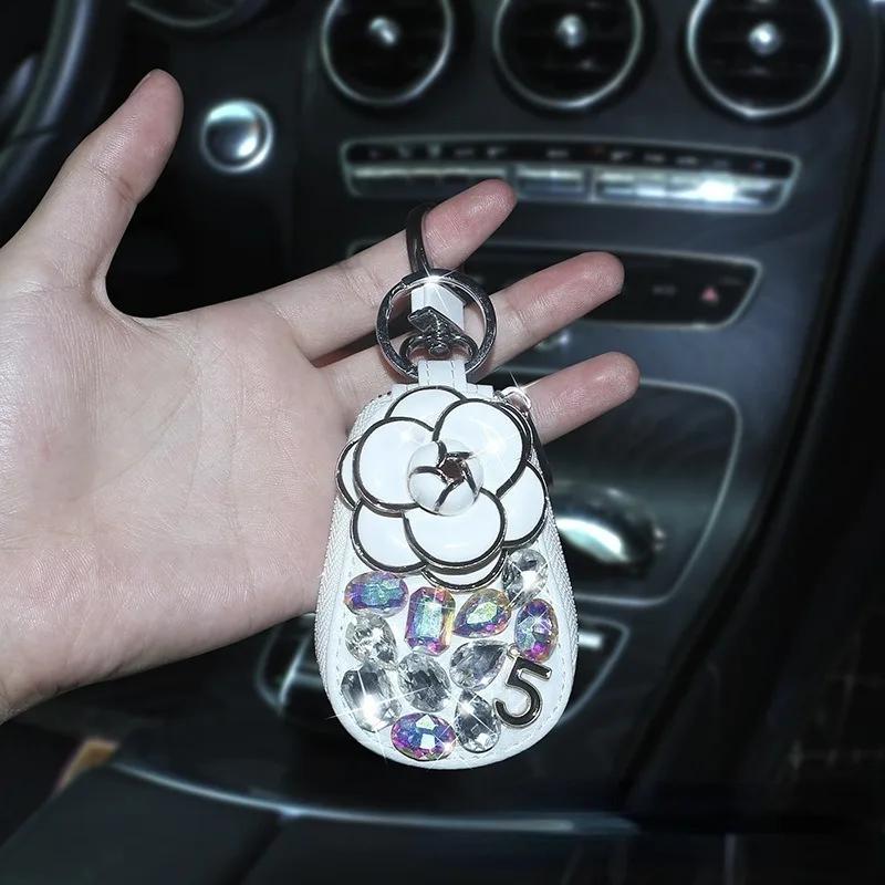 Carcasă pentru chei de mașină Camellia cu incrustație de diamante artificiale Husă de chei de mașină cu stras Husă universală de protecție a cheilor