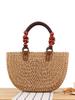 Wood bead hand-held straw bag handmade zipper woven bag large capacity beach tote bag women's shoulder vegetable basket bag