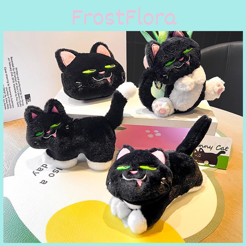 Adorable Original Bad Smiling Cow Cat Plush Keychain Cute Black Cat Accessory Gift