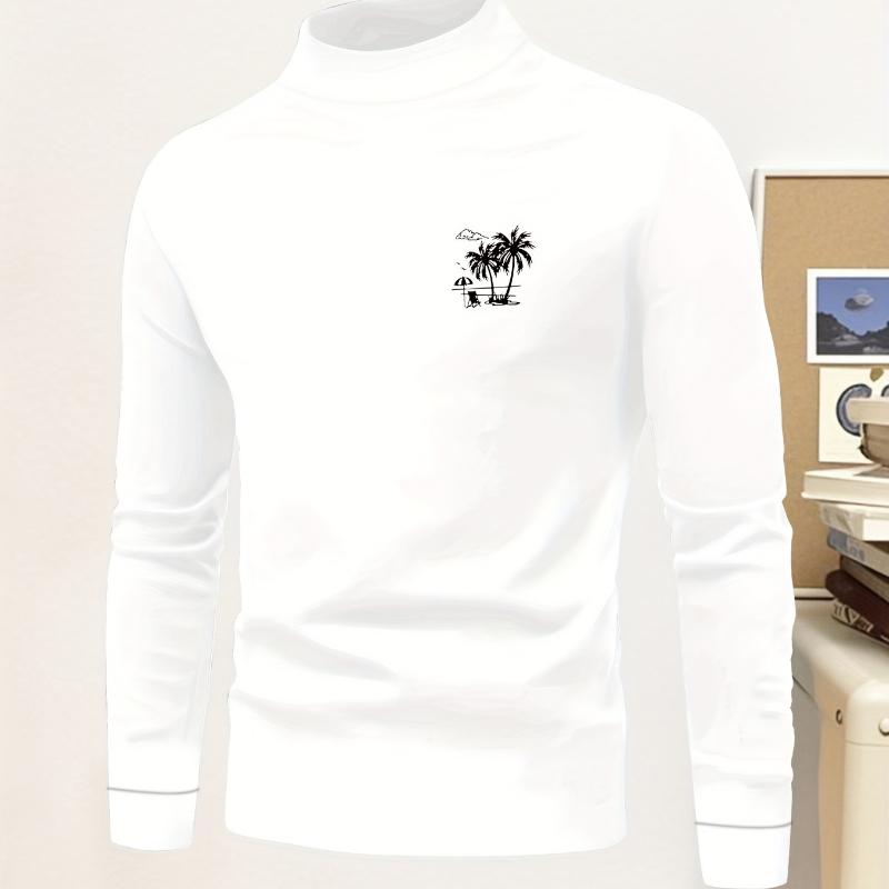 Neck Long Sleeve T-Shirt, Fleece Lined, Solid Burgundy, Warm Winter Casual Layer