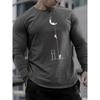 Men's Casual Sports Landing Moon Pattern Printed Round Neck Long Sleeved T-shirt Top