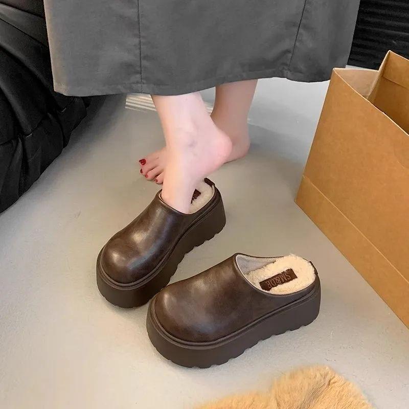New Style of Height-increasing Thick-soled Cotton Shoes for Women with Half-drag and Anti-slip Properties