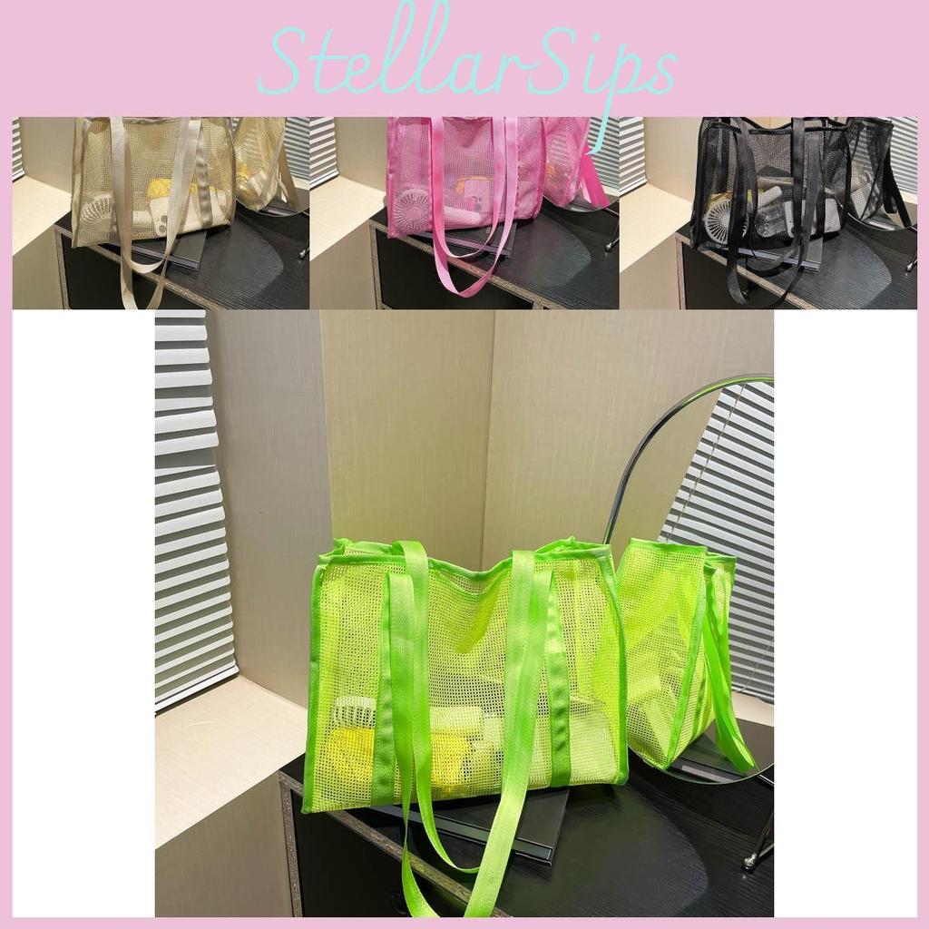 Chic Fashionable One Shoulder Mesh Beach Bag With Soft Lightweight Design