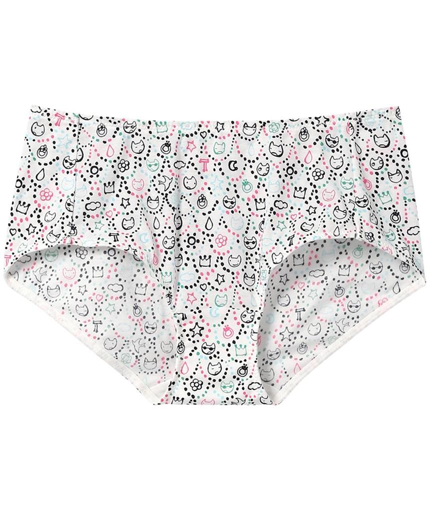 A pattern that colorfully depicts motifs such as cats within a scalloped pattern that draws wavy curves.