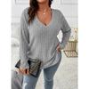 New Spring Autumn Solid Color Women's Tops V-neck Long-sleeved Pit Striped Brushed T-shirt Loose Pullover
