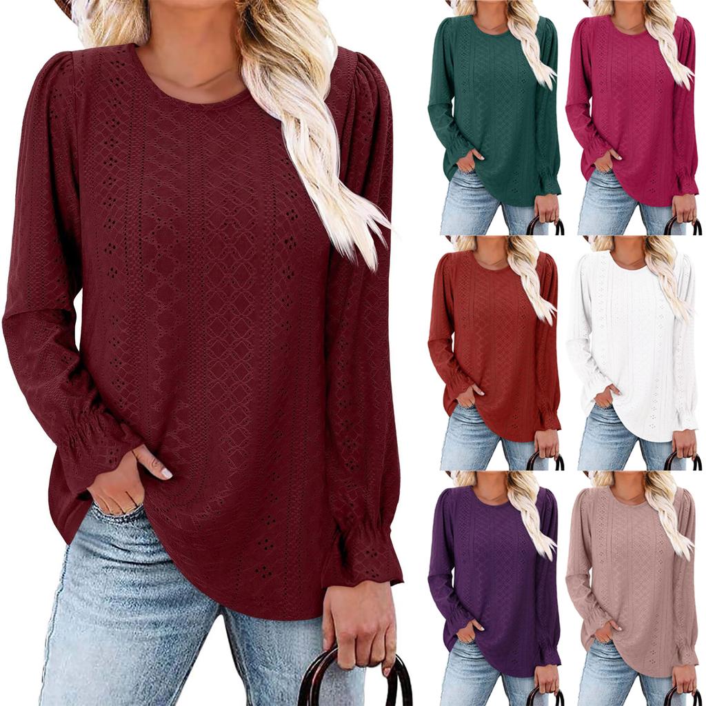 Women's Fashionable Solid Color Round Neck Long Sleeved Casual Loose Top