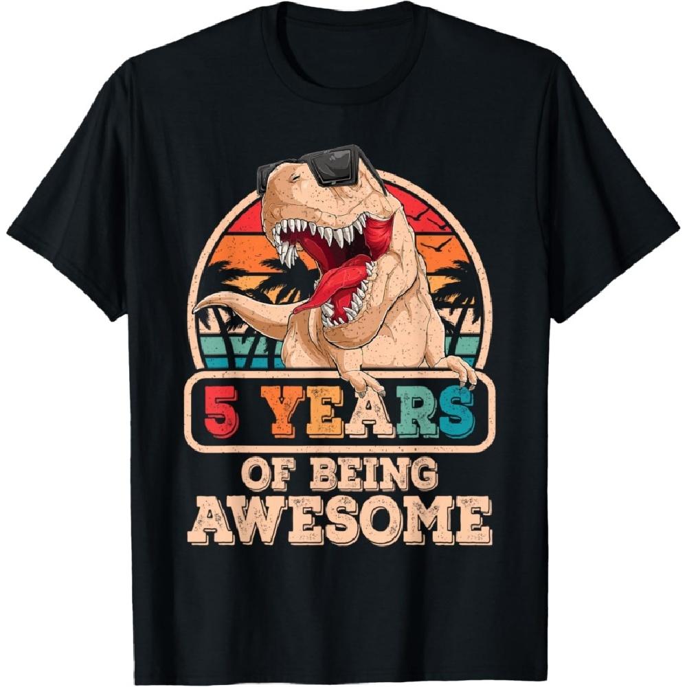 5 Years Awesome T Rex Dinosaur 5th Birthday Dino Boys Kids T-Shirt