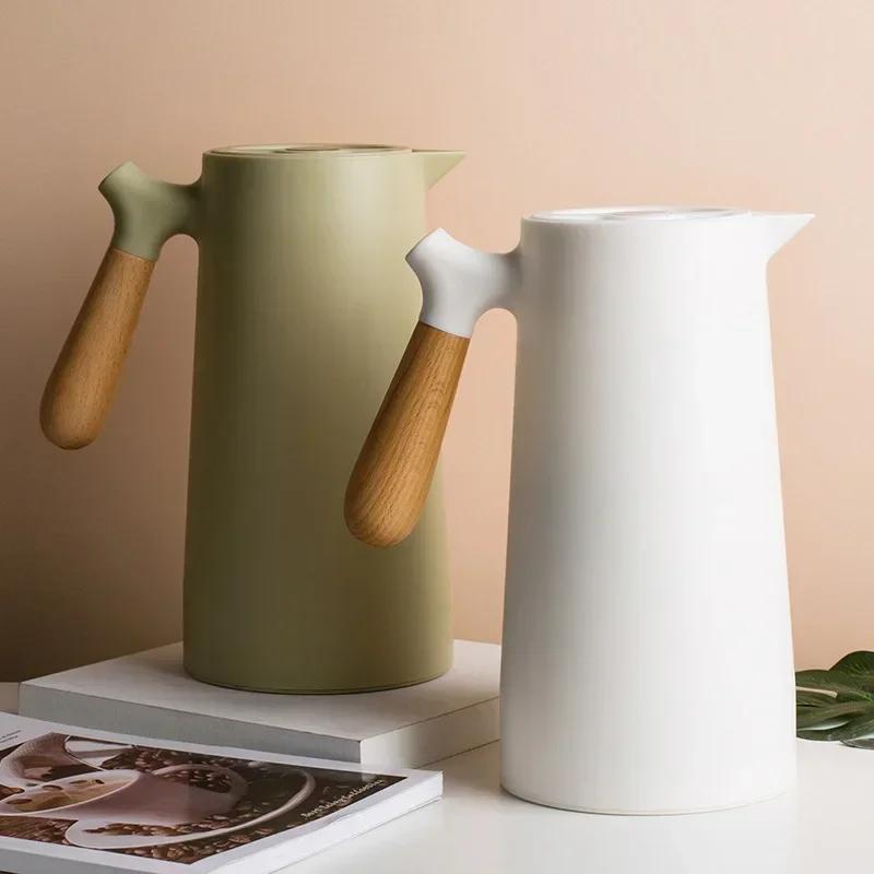 1L European Style Insulated Kettle Household Hot Water Bottle Insulated Bottle Wooden Handle Large Capacity Warm Water Kettle