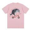 Fun Raccoon on Bicycle Meme T Women's Casual Vintage Cartoon T-shirt Summer Humorous Short sleeved T-shirt Top