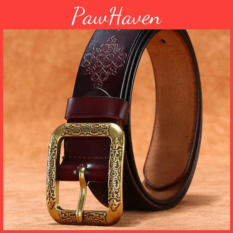 Classic Leather Belt For Men And Women With Brass Pin Buckle And Casual Style