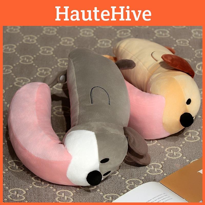 Cute Cartoon Long Tongue Puppy Design Portable Neck Pillow For Travel And Rest