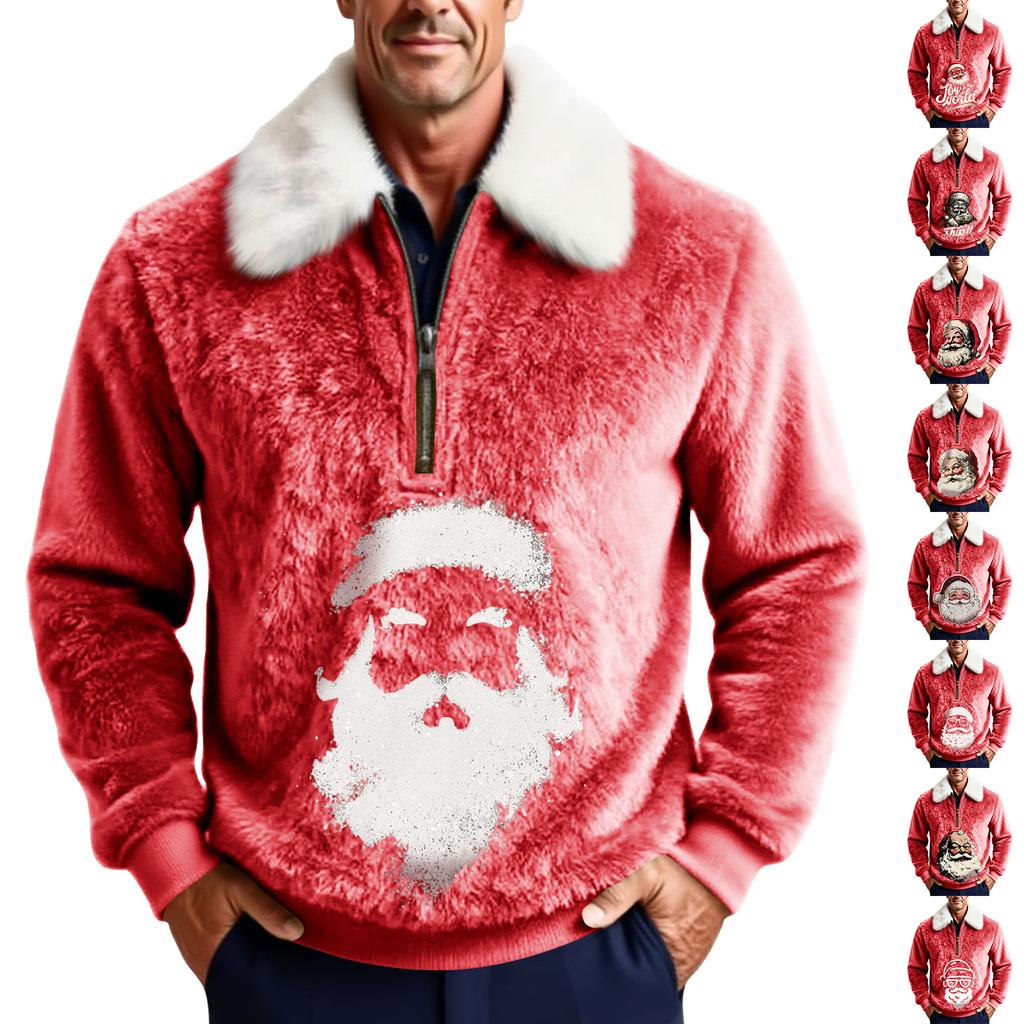 Men's Christmas Print Stand Collar Fleece Sweatshirt