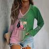Ladies' Long Sleeved Raglan Sleeves With Witch Print Casual Top