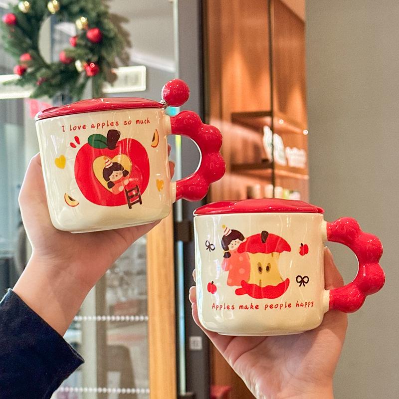 Milk fufu apple girl mug high value girl ceramic drinking cup office coffee cup birthday gift