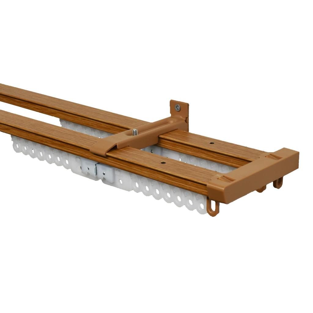 TOSO Curtain Rail, Double, 1.1m-2.0m, Retractable, Wood Grain, Silent Runner, Return Feature, Woody Medium, Ceiling/Front Mount, 30007687