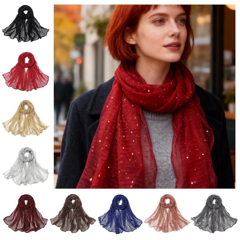 155×70cm Sequin Scarf Thin Transparent Hijab Luxury Headscarf for Women