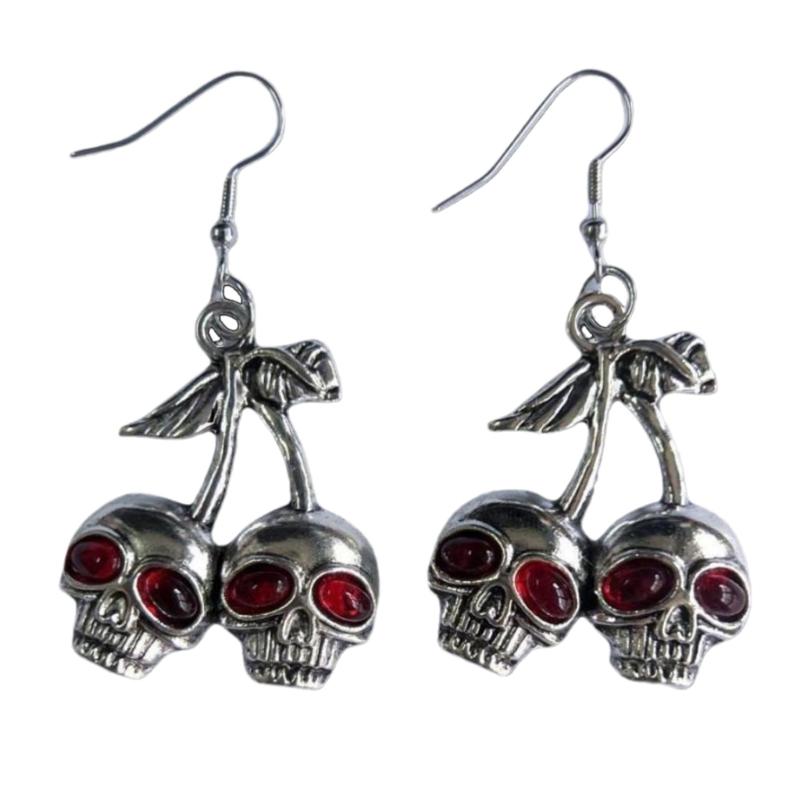 Skull Cherry Dangle Earrings Edgy Jewelry Gothic Skeleton Pendant Earring Hip Hop Jewelry for Women Girl Halloween Decor