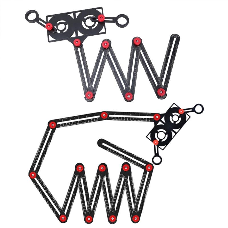 Our multi-angle measuring ruler is newly upgraded and feature-rich. It is a measuring tool and tile positioning hole opener. Other common measuring scales consist of only a four-piece ruler. Our newly upgraded universal angle ruler has a six-piece ruler and six metal knobs that fold freely. Simply adjust the six metal knobs to precisely create the shape you want. Measuring objects of different shapes is quick and easy.