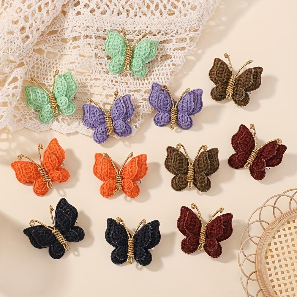 12pcs Knitted Three-dimensional Butterfly Hair Clip Multi-color Morandi Knitting Technique Gold Decoration Children's Daily Cute