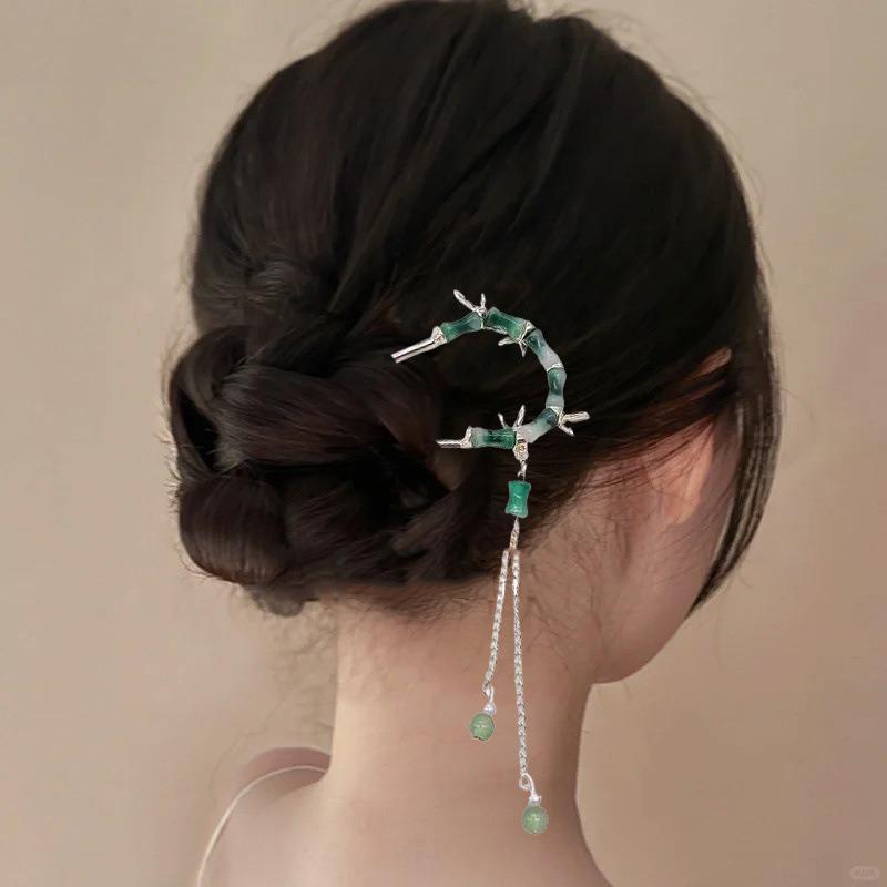 New Chinese Style Bamboo Knot Women's U-shaped Alloy Hairpins with Bun Heads Hair Accessories Fashionable High-end Shark Clips