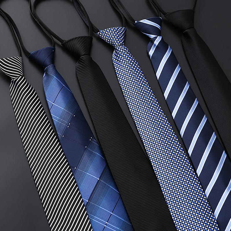 Elegant 8CM Lazy Ties Blue Black Red Striped Men Shirt Business Dress Zipper Tie Neckties Accessories Wedding Groom