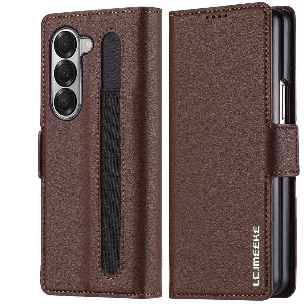 Premium Leather Phone Case for Samsung Galaxy Z Fold 7 6 5 4 3 Fold6 Fold5 Fold4 5G with Pen Holder Wallet Flip Phone Cover