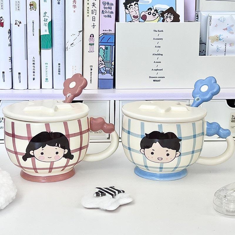 High-value male and female couples drinking cup cute ceramic mug with lid office breakfast cup birthday gift