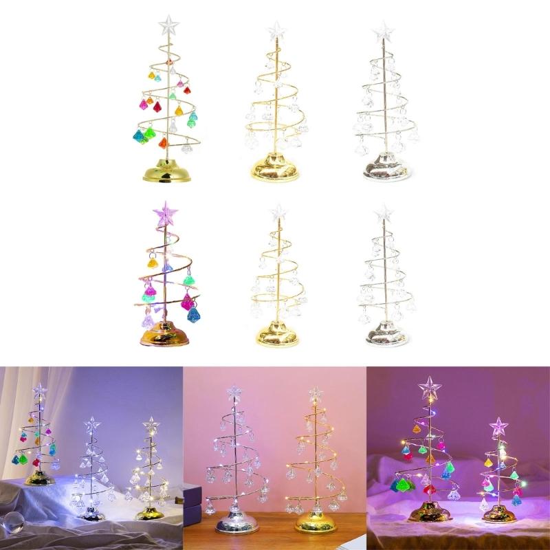 Crystal Star Iron Christmas Tree with LED Light Small XmasTree Table Lamp Christmas Decorations for Home Party New Year