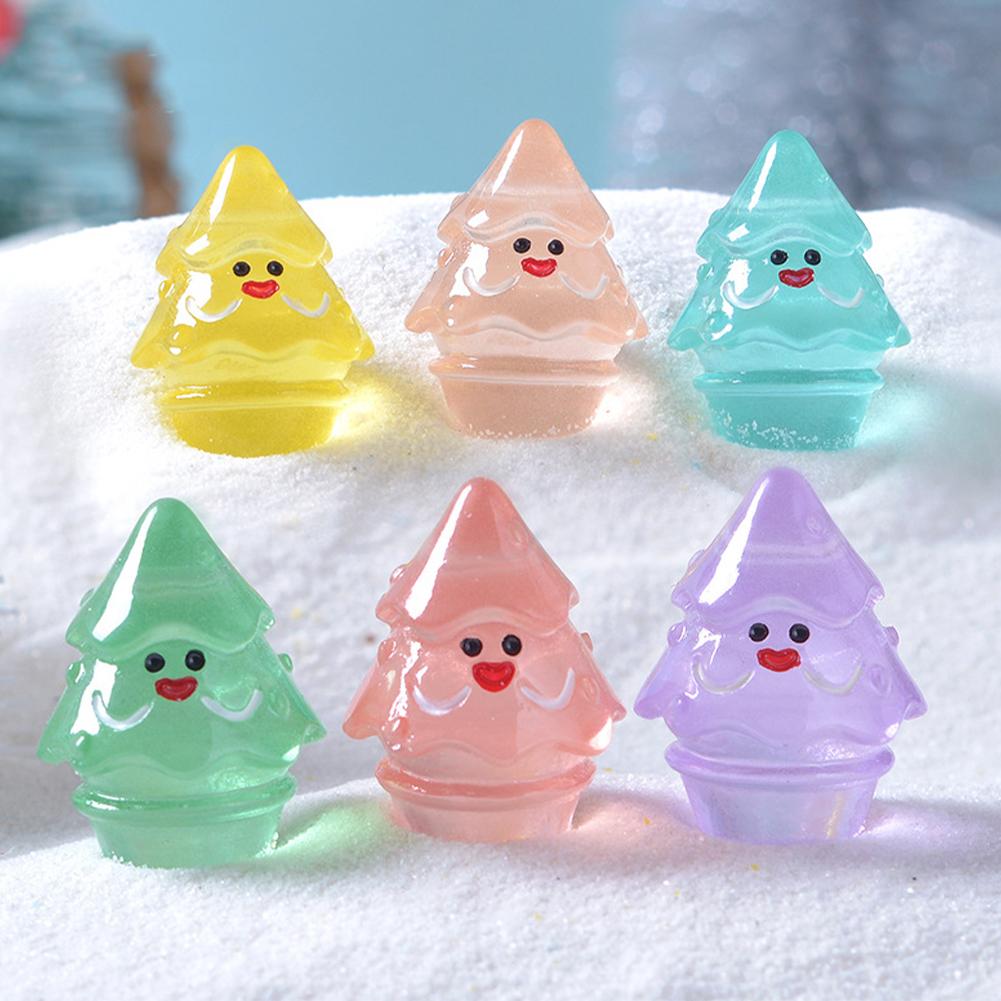 Christmas Glow in The Dark Smiling Face Christmas Tree Resin Accessories DIY Bags Pendant Materials Micro Landscape Ornaments