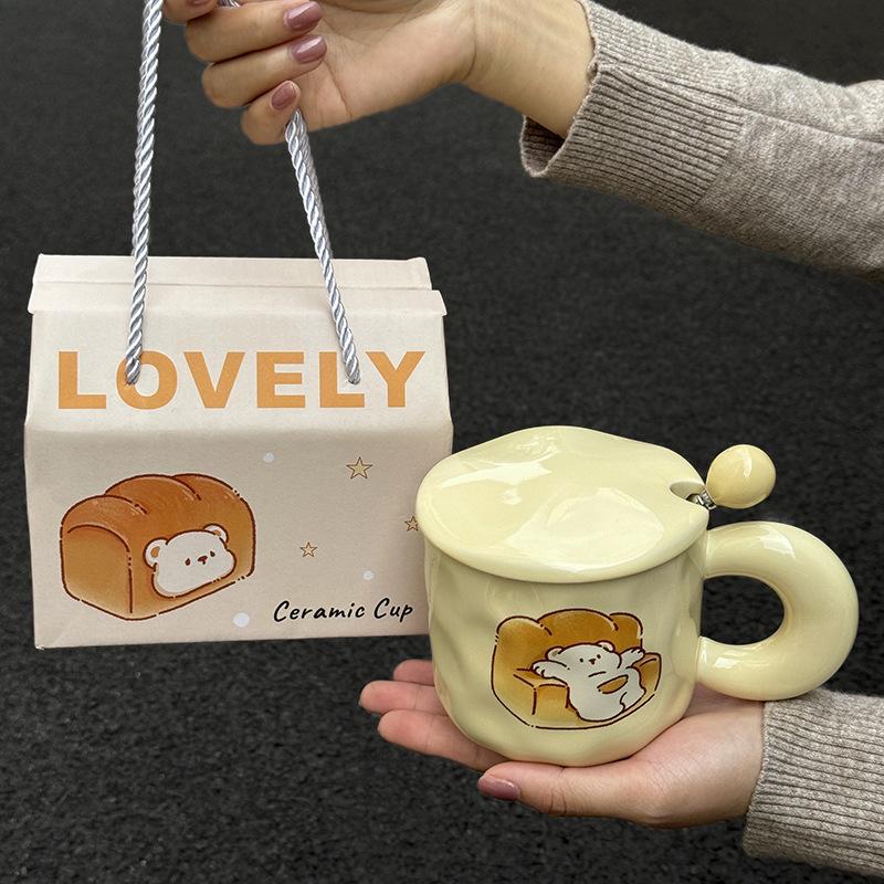 Cute cute mug birthday gift girl gives girlfriend creative practical cup large capacity ceramic cup with lid