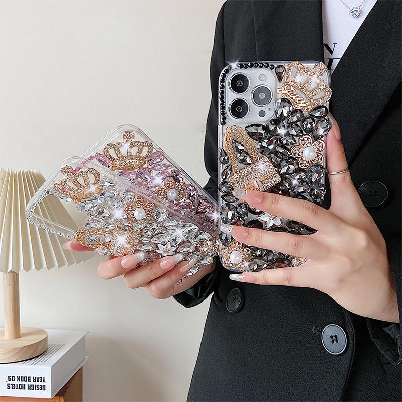 For Apple 17/ for IPhone15/14/XR Japanese and Korean Mobile Phone Case Luxury Rhinestone Pearl Flower Crown 13Pro